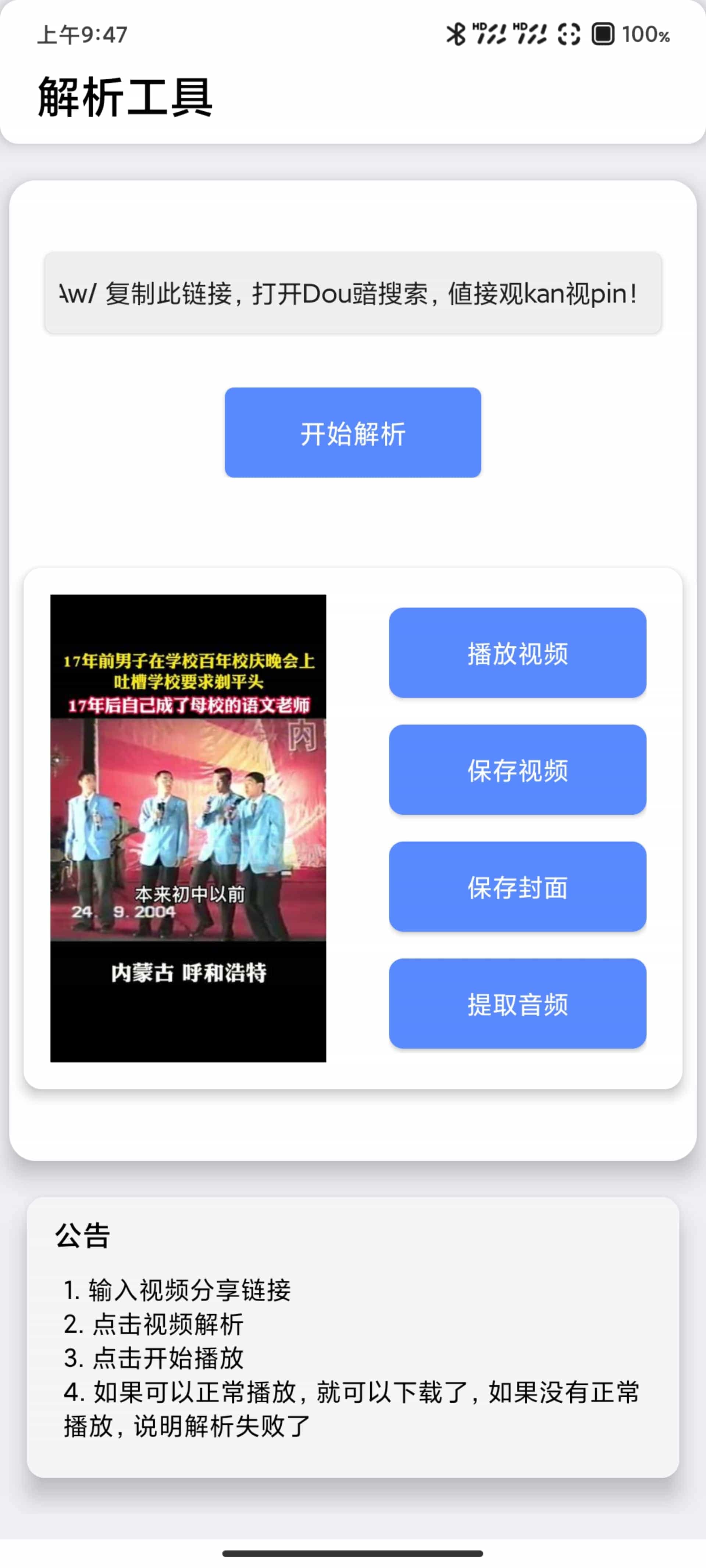 一个非常不错的短视频解析工具,可以去水印下载各种短视频,同时还可以提取封面、音频等,还挺好用的。