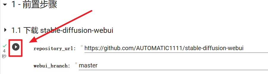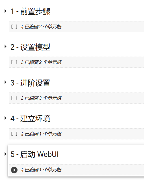 在「进阶设置」以及「建立环境」这两块,对于刚接触 AI 绘画的新人来说,其实不重要,依次鼠标放上去运行代码就好了。
