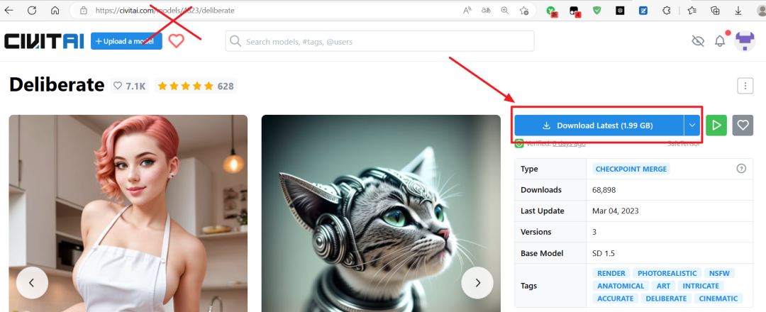 点进去,我们要的不是 C 站展示页的链接,而是右侧下载按钮的链接。