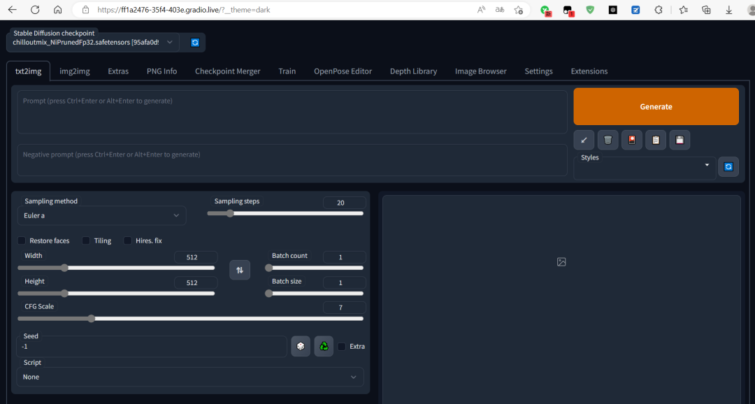 关于 Colab 脚本部署的内容已经介绍完了,但为了大家有更好的初次绘画体验,我们再简单说说这个用户操作的图形界面。(不涉及提示词)