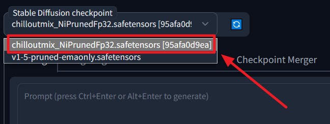 左上角这里,是大模型的选择,如果我们勾选了预设的专精小姐姐写实风的「chilloutmix」,记得来这里切换。