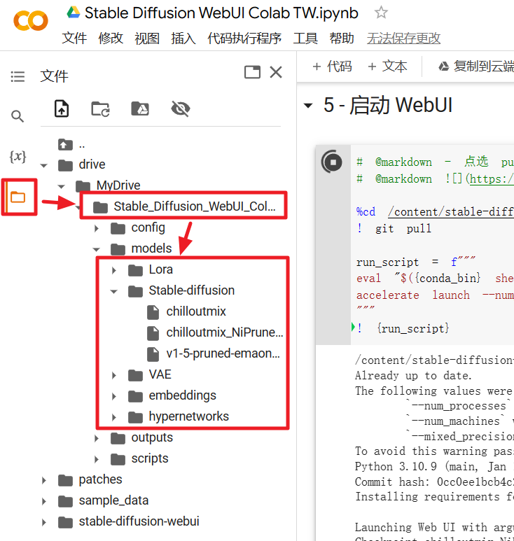如果你想运行自己的模型,只要回到 Colab 里,把模型上传到指定文件夹即可。