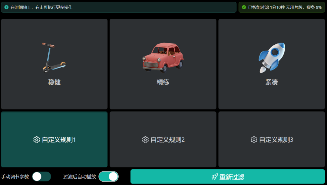 当然也可以手动去调节参数,过滤部分就是会删掉的内容。